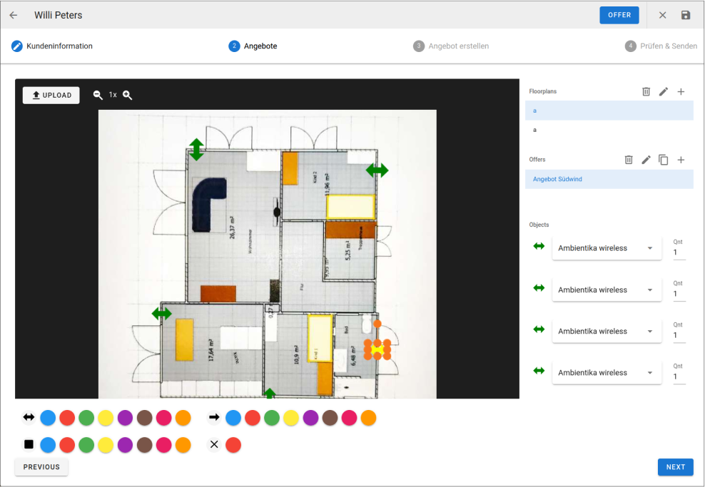 Offerman is an all-in-one offer generation platform for ventilation company. It handles everything from sending e-mails to customers to generating the room layouts with a custom built image editor, forked and modified to add additional event handles to integrate with the rest of the platform.